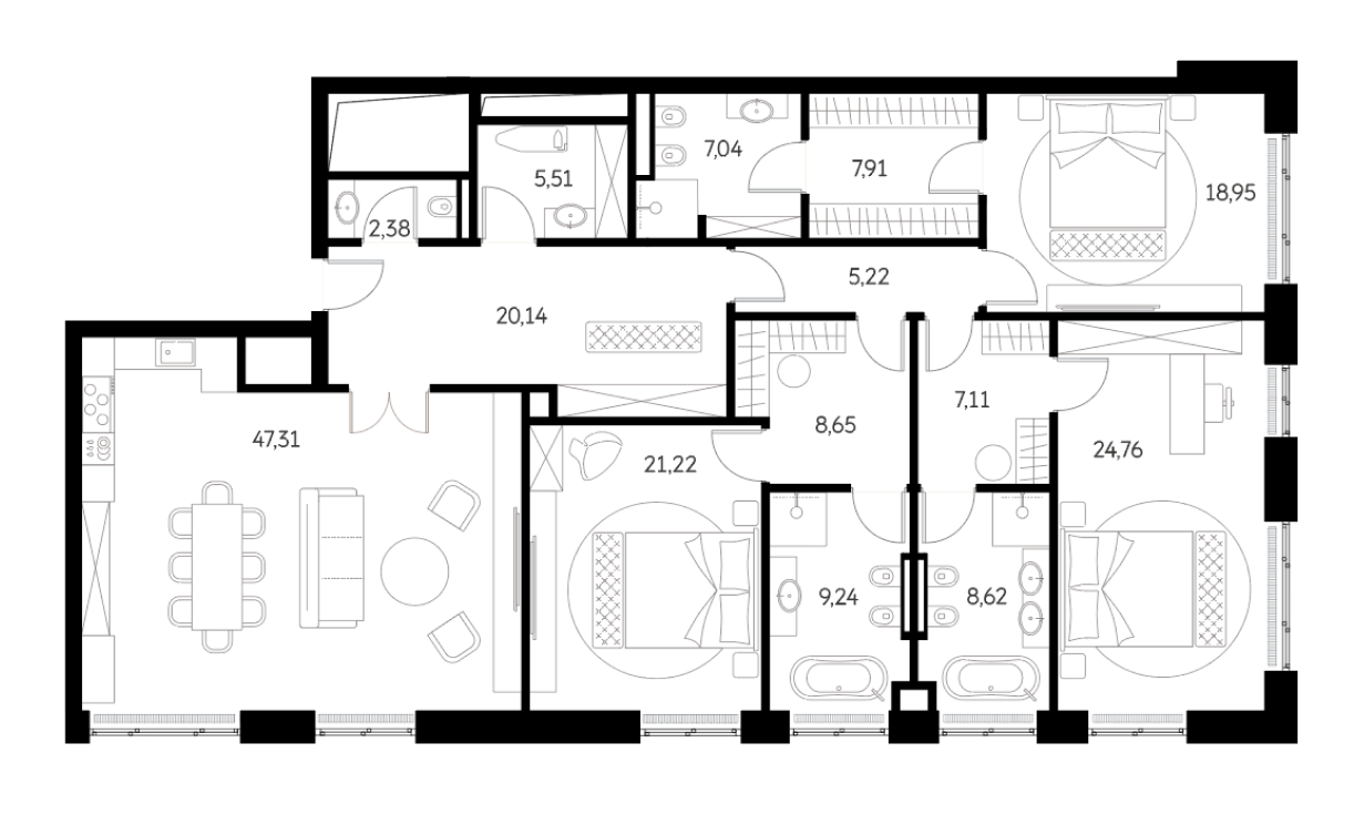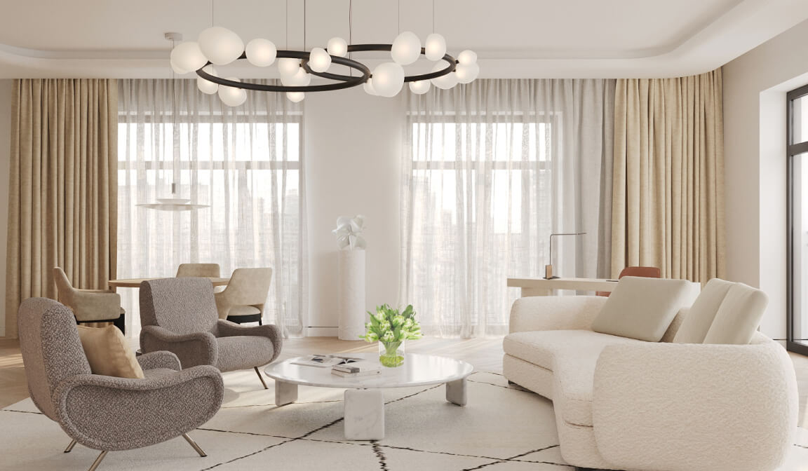 26 резиденций 96,85 до 327 м² со сдачей в IV квартале 2027 года — чистый лист для вашего стиля жизни: от минимализма до ар-деко, с французским вниманием к деталям